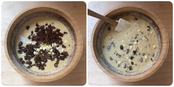 Voeg nu de feta, zongedroogde tomaten, olijven en zout toe en meng alles goed samen.