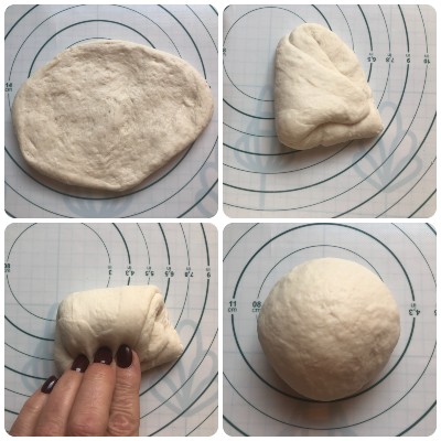 Na de eerste rijzing, verplaats je het deeg naar een met bloem bestoven werkblad, kneed het een paar momenten tot een soort worst en verdeel het in acht stukken van elk 145/150 g.