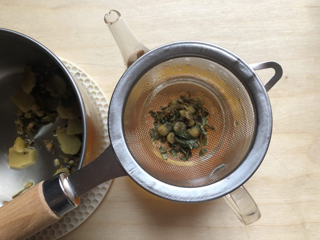 Na de rusttijd, filtreer het geheel door een fijne zeef en druk de kruiden lichtjes aan zodat ze al het opgenomen water vrijgeven, rijk aan actieve bestanddelen. Drink de thee warm. Enjoy! Paola