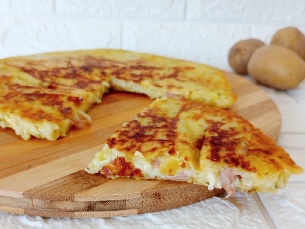 De aardappelfocaccia wordt gemaakt met heel weinig en eenvoudige ingrediënten die we allemaal in huis hebben: aardappelen, bloem, ei, geraspte kaas en zout.