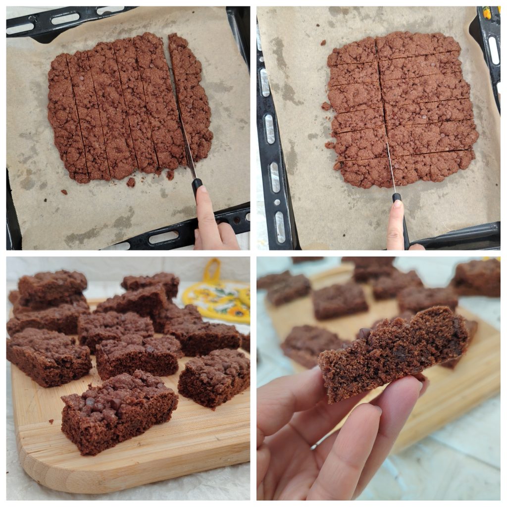 Haal uit de oven zodra hij klaar is en laat volledig afkoelen voordat je de koek in blokjes of stukjes snijdt, zoals jij het wilt.