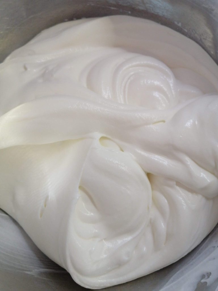 Klop de room totdat het half stevig is. Voeg de banketbakkersroom (die koud moet zijn) beetje bij beetje toe. Werk langzaam met de elektrische mixer tot je een gladde en luchtige room krijgt.