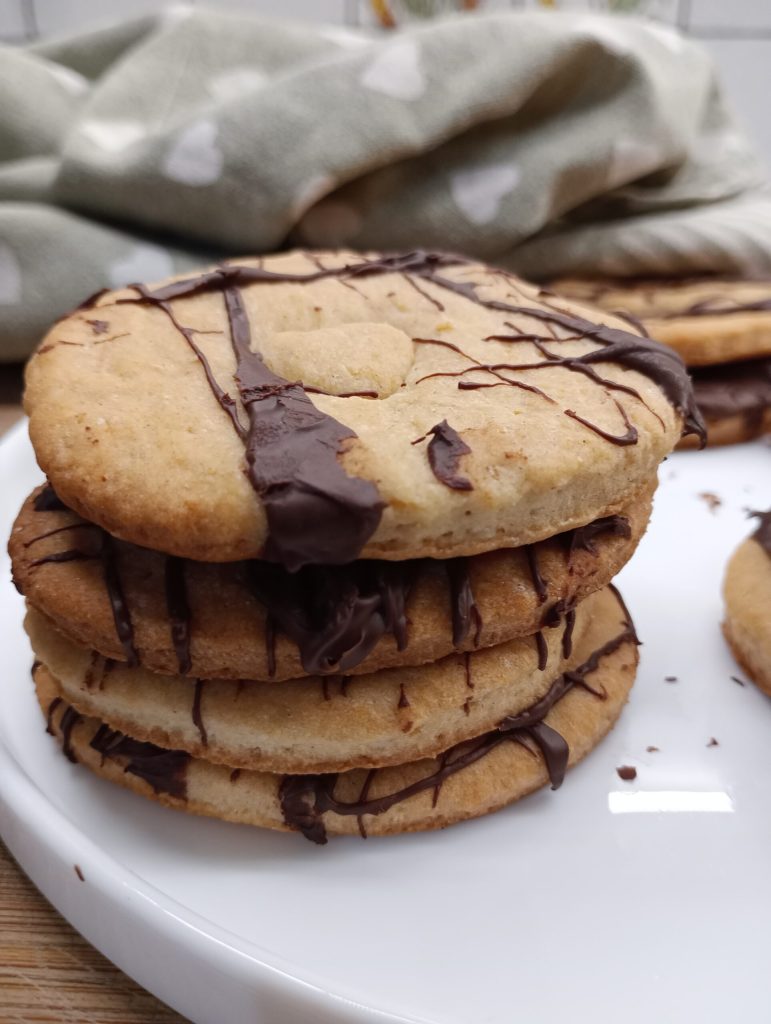 Vandaag stel ik deze heerlijke droge koekjes zonder eieren voor. Ze zijn knapperig aan de buitenkant en precies goed bros aan de binnenkant. Ze zijn ideaal op elk moment van de dag, om alleen van te genieten of vergezeld van koffie of thee. Ik heb deze koekjes verrijkt met gesmolten pure chocolade, een echte traktatie.