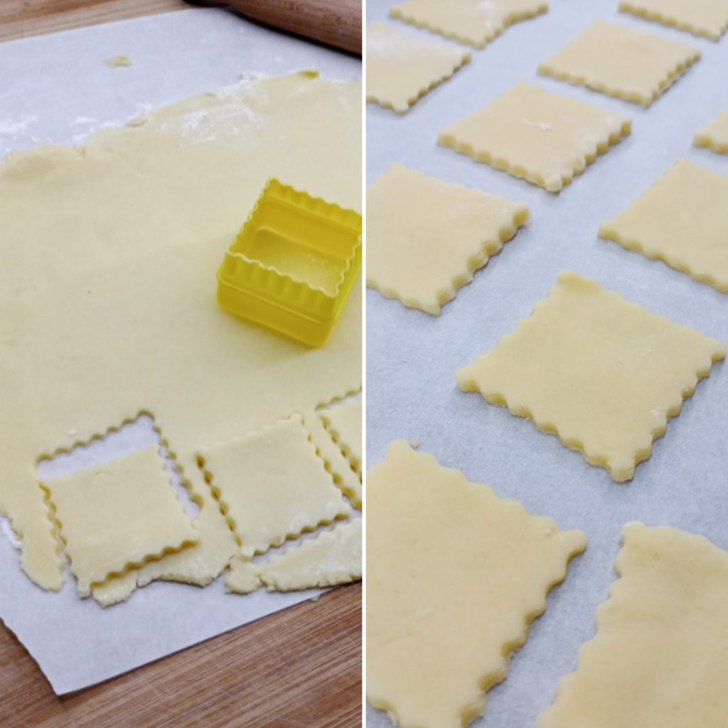 Snijd vormen met een vorm of een glas en leg ze op een bakplaat bekleed met bakpapier.