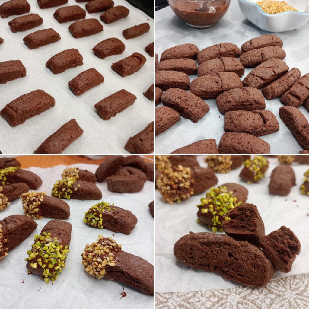 Om ze nog lekkerder te maken, doop de afgekoelde koekjes in voorheen gesmolten chocolade en rol ze direct door de kruimels.