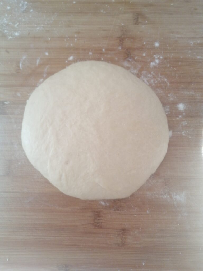 In een grote kom, maak een kuiltje in de bloem, voeg het lauwwarme water toe, de olie en het zout en kneed met een vork, daarna met de handen, tot een glad en homogeen deeg.