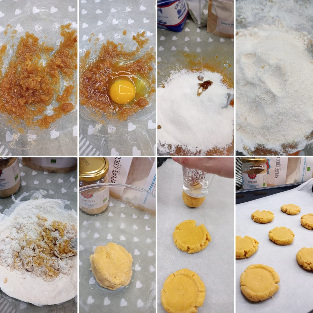 Voeg de bloem 00, de kokosmeel en tot slot het bakpoeder toe, werk met de vork totdat het mogelijk is en kneed dan met de hand.
