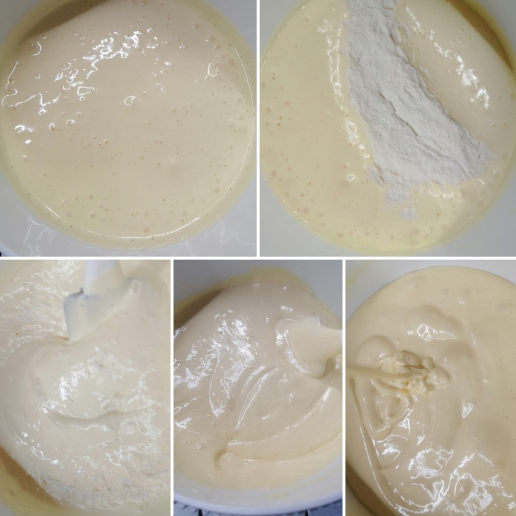➡️ wanneer het tijd is om de bloem door het eieren-suikermengsel te mengen, moet je dit langzaam in meerdere keren doen, van onder naar boven met een spatel