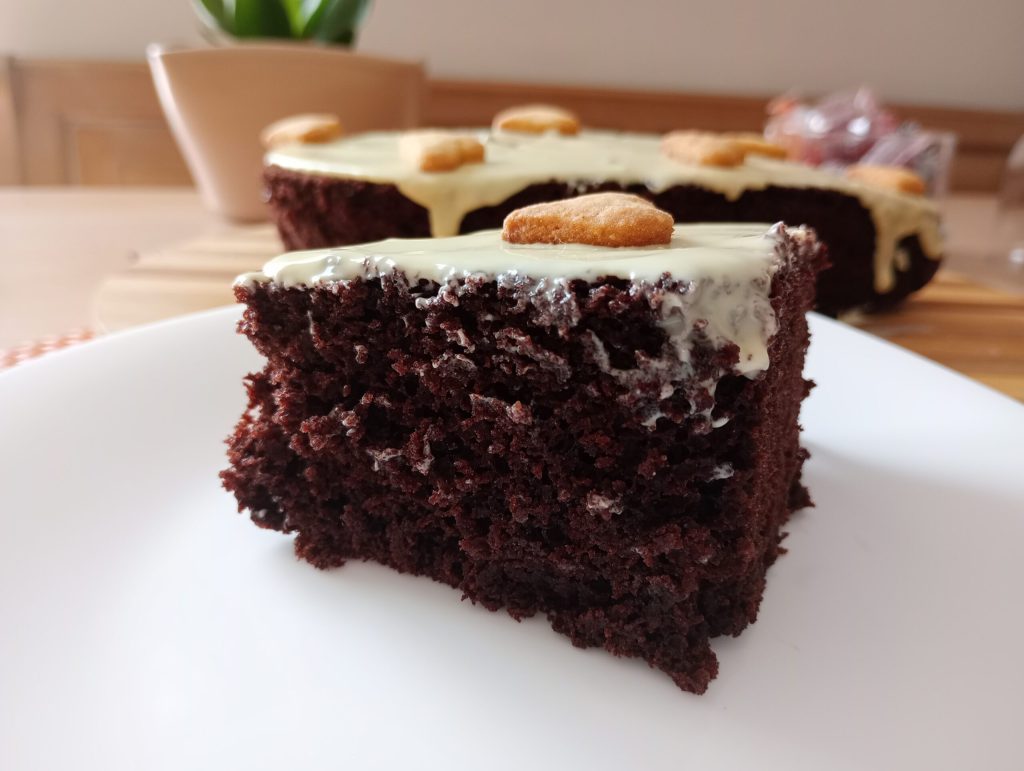 De taart blijft 3 dagen goed op kamertemperatuur onder een stolp.