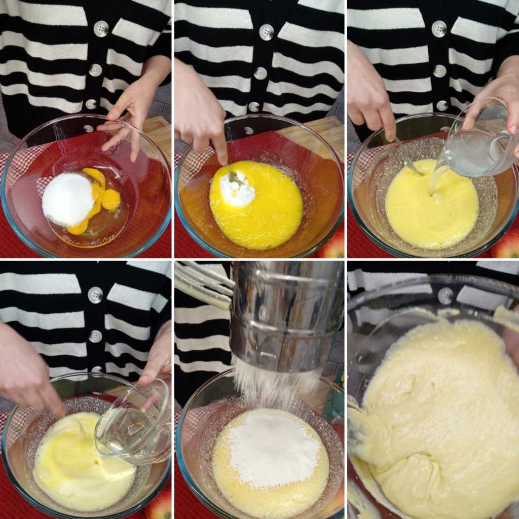 Klop de eieren met de suiker, voeg de ricotta, het water en de olie toe en meng alle ingrediënten goed.