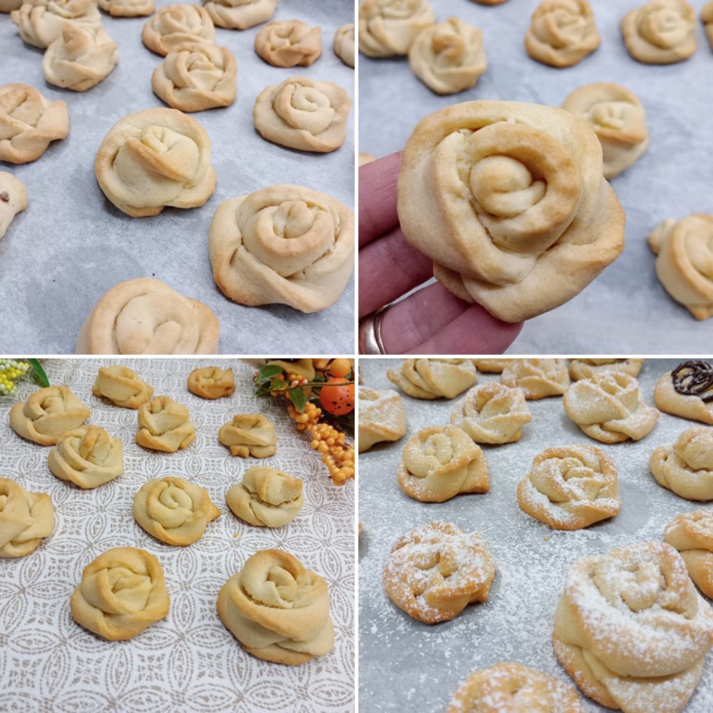 De rozen van zanddeeg zijn zeer gemakkelijk te maken. Voor het maken van deze rozen heb ik een olie-zanddeeg gebruikt, licht en zeer bros. Ideaal bij het ontbijt met een cappuccino of vergezeld van een goede koffie of thee in de middag.