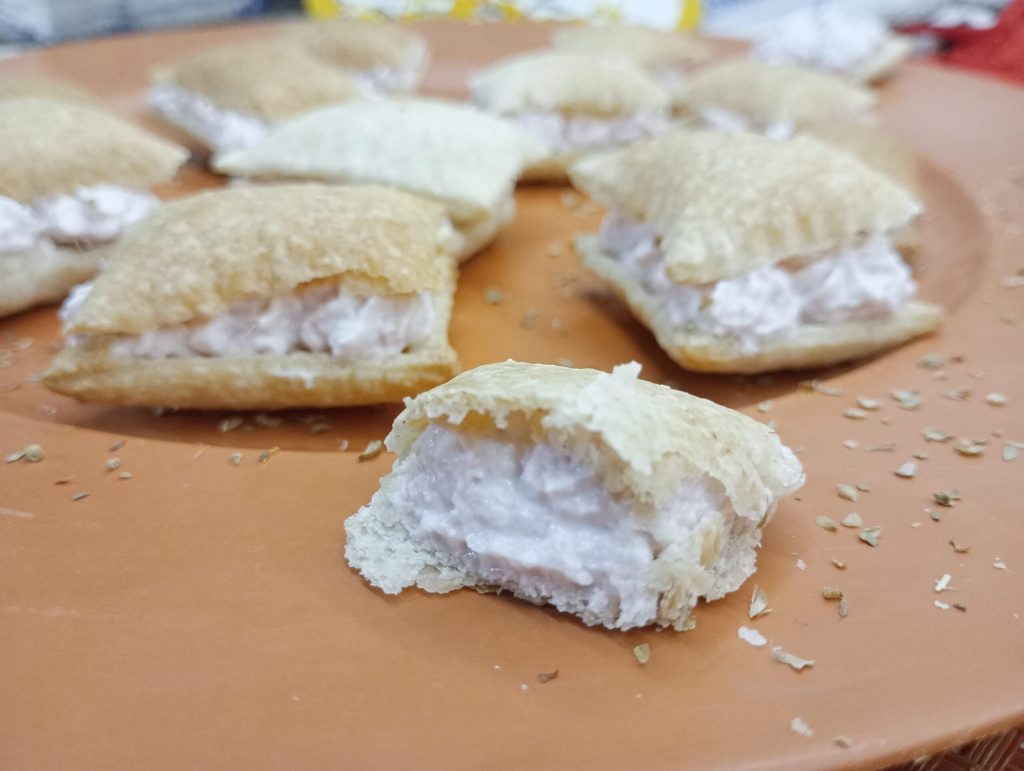Maar als je ze echt van tevoren wilt bereiden, bewaar ze dan eenmaal gevuld in de koelkast. (Een keer heb ik ze vier uur bewaard voordat ik ze serveerde en ze waren heerlijk, het bladerdeeg was iets zachter geworden, maar nog steeds heerlijk)