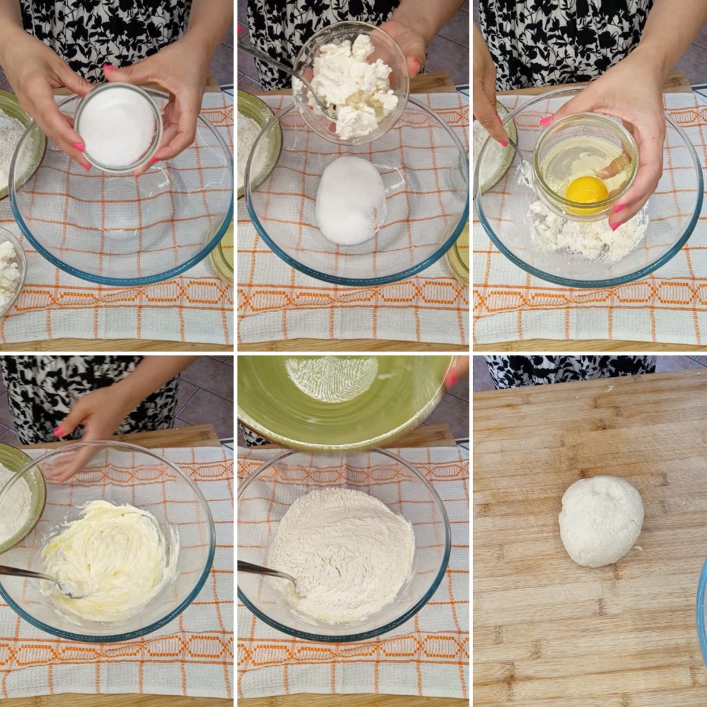 • Meng in een kom de suiker met de ricotta en voeg dan ook het ei toe.