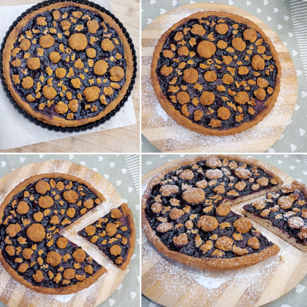 De taart met ricotta-deeg en bosbessenjam is klaar om van te genieten.