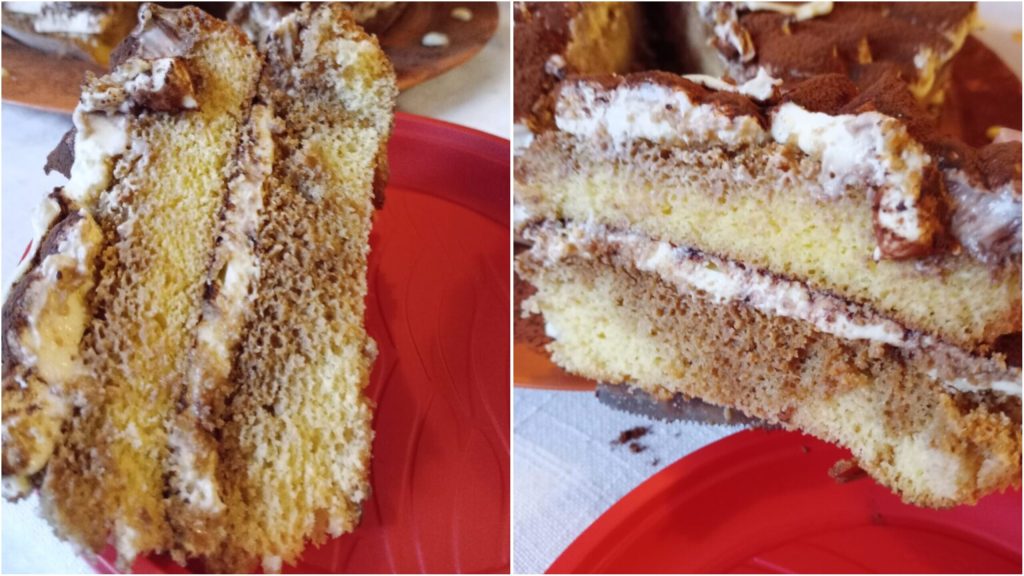 Het geheim van zijn zachtheid? Een delicate doordrenking met melk en koffie die elke plak tot een waar genot maakt. Het is het ideale dessert voor een familiediner of een avond met vrienden: ik verzeker je dat het hap na hap zal veroveren.