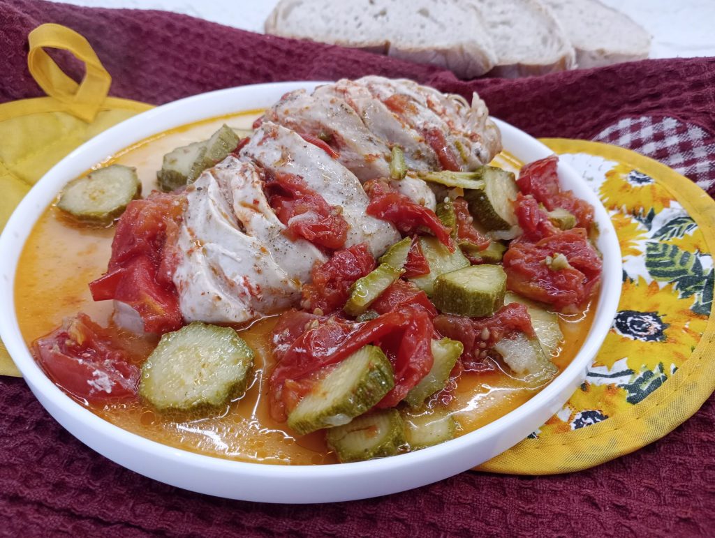 Voor een smakelijk resultaat heb ik ervoor gekozen om de kip te vergezellen met cherrytomaatjes en courgettes, maar voel je vrij om de groenten van jouw voorkeur te gebruiken… koken op laag vuur met een deksel zal de rest doen.