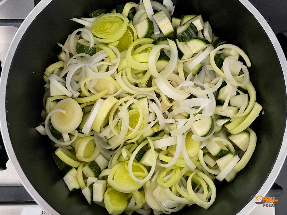 Een romige en smaakvolle courgette-preisoep, heel eenvoudig te maken, ook geschikt voor het voorjaarsseizoen, omdat het delicaat en licht is. Het recept is erg makkelijk en snel, je hoeft alleen maar de groenten met groentebouillon te koken, alles te pureren en naar smaak een beetje room of yoghurt toe te voegen. De soep is uitstekend als voorgerecht of als hoofdgerecht, en kan zowel warm als lauwwarm worden geserveerd… probeer het zelf ook!