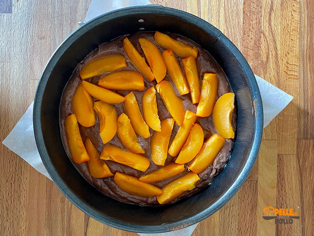 Heerlijke taart met abrikozen en cacao, verrijkt met stukjes chocolade… een zachte en snelle basis om te maken, met daarop veel verse seizoensabrikozen. Een eenvoudige en geurige cake, ook perfect voor het ontbijt. De zure smaak van de abrikozen vormt een aangename tegenstelling met de cacao… maar als je de zuurheid wilt verminderen, kun je de bovenkant (na het bakken) bestrijken met abrikozen- of perzikjam. Probeer dit heerlijke recept!