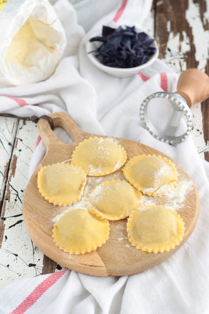 Eindelijk koken we! Met de hulp van mijn moeder heb ik vandaag deze heerlijke ravioli gevuld met rode kool gemaakt.