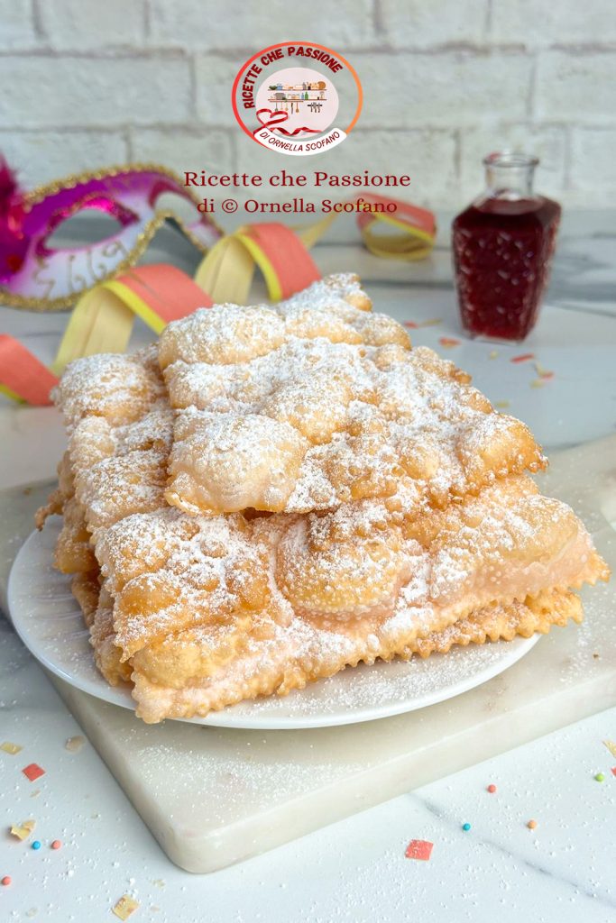 Carnaval chatjes met alchermes, knapperig en luchtig, en nog lekkerder met alchermes in het deeg. Tijdens Carnaval en de periode ervoor is de drang voor chatjes sterker dan normaal, dus gaan we de keuken in om ladingen chatjes te maken. Het is nog januari, maar ik heb ze al 2 keer gemaakt, de eerste keer met strega, en de tweede keer met alchermes voor het plezier van mijn nichtje, die elke keer een paar schalen ervan krijgt, allemaal klaar om van te smullen, en zoals zij zegt, zijn ze onweerstaanbaar, de ene leidt tot de andere, dus het is belangrijk om er veel, heel veel te maken, zoveel dat ze me in een week bijna dwong om ze 2 keer te maken. Ik doe het met plezier voor haar, om altijd iemand te hebben om op te eten wat ik kook, maar binnenkort gaat ze terug naar de universiteit voor haar laatste examens voor haar scriptie.