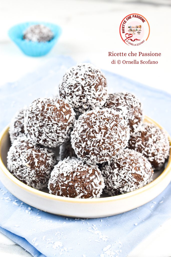 Chocolade en kokosbonbons die je snel thuis kunt maken met slechts 4 ingrediënten, op basis van gecondenseerde melk zoals de beroemde Braziliaanse brigadeiros, die meestal zonder kokos in de chocoladesmaak worden bereid. Hier is het originele chocolade brigadeiros recept. Als je ze nog nooit hebt geprobeerd, raad ik ze aan, ze zijn fantastisch, smelten in je mond, ideaal om op kamertemperatuur te serveren, zodat ze in je mond smelten in een explosie van sublieme smakelijkheid, die wordt gegeven door de chocolade en kokos, waardoor ze ook geschikt zijn om te serveren op warme zomerdagen, plezierig en fris, misschien enkele minuten na ze uit de koelkast te hebben gehaald. Deze lekkernijen blijven goed bewaard voor meerdere dagen, zelfs een week, altijd in een goed afgesloten container, dus je kunt ze ook van tevoren bereiden, perfect voor al onze speciale gelegenheden. De chocolade en kokosbonbons zijn perfect om te serveren in een rijk dessertbuffet, in papieren vormpjes maar ook zonder.