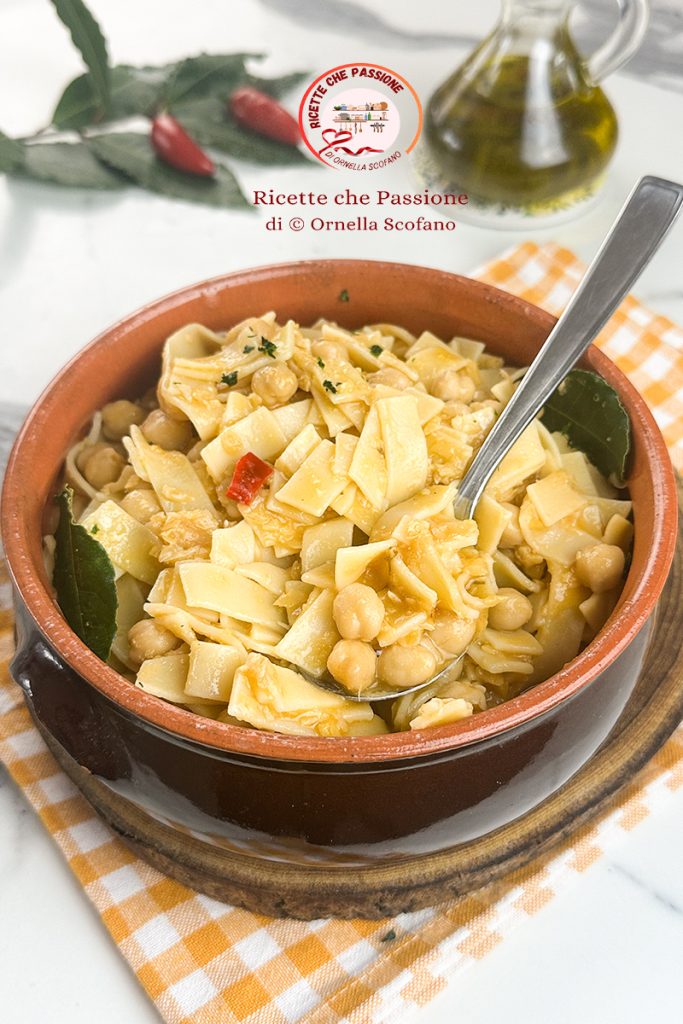 Vandaag snelle en heerlijke pasta en kikkererwten in de pan. In Calabrië staat dit gerecht bekend als lagane en kikkererwten, en het is een traditioneel gerecht uit de Calabrese keuken, dat wordt bereid bij speciale gelegenheden, zoals bij Sint Maarten, maar ook bij Sint Jozef, op deze speciale dagen, met dit eten konden zelfs de armen zich verzadigen, ontvangend een bord van deze smakelijke soep, in de loop der tijd heeft deze traditie geleid tot folkloristische feesten, met het ritme van trommels, waar deelnemers kunnen genieten van de pasta en kikkererwten bereid op traditionele wijze, met het koken van de kikkererwten in een aardewerken pot, op het vuur, en dan is de pasta strikt zelfgemaakt, met bloem, griesmeel en water, het wordt snel gekookt en gemengd met de gekookte kikkererwten. Vandaag laat ik jullie het snelle recept achter om een nog smakelijker gerecht te bereiden, maar natuurlijk geef ik ook de verschillende verwijzingen als je alles thuis wilt maken. Voor het recept gebruiken we in Calabrië meestal korte gesneden tagliatelle (in het dialect lagane) of maltagliati, die meer lijken op de Campaanse lagane, maar tegenwoordig wordt vaak kleine kant-en-klare pasta gebruikt. Voor het recept heb ik mijn gedroogde kikkererwten gebruikt, geweekt en gekookt in een aardewerken pot, ze kunnen ook in een snelkookpan of een gewone pan worden gekookt. Ik had ze ingevroren zodat ik ze altijd klaar had wanneer ik er zin in had, maar als je geen tijd hebt om ze thuis te koken, kun je ook kant-en-klare gebruiken. Hier de details voor het koken van de kikkererwten en enkele recepten die ik geweldig vind met kikkererwten of kikkererwtenmeel.