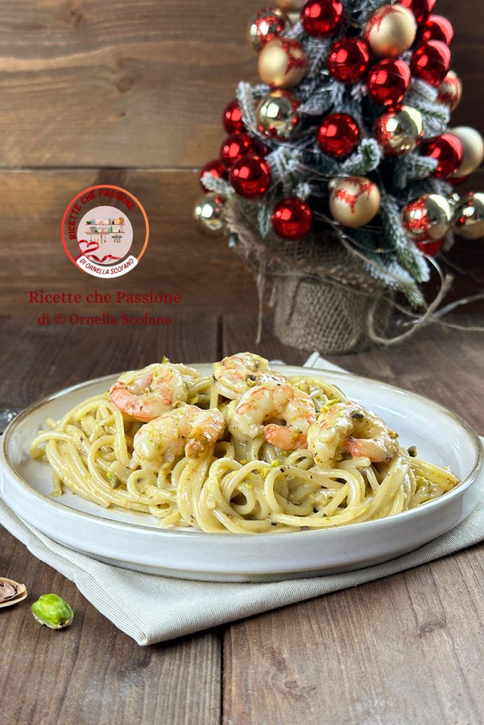 Een heerlijk hoofdgerecht pasta met garnalen en pistachepesto, een elegant en verfijnd gerecht met een heerlijke smaak, gemakkelijk en snel te bereiden, perfect voor de feestdagen, zowel voor kerstavond als de kerstlunch en het mooie is dat het echt in een mum van tijd te maken is, met een snelle zelfgemaakte pistachepesto, die je kunt maken terwijl je het pastawater aan de kook brengt. Voor de pesto heb ik gezouten pistachenoten gebruikt, die zijn tijdens de feestdagen nooit afwezig, ik hou ervan en koop ze wanneer ik kan, dus ik heb er een paar gepeld en snel fijngehakt met alleen extra vergine olijfolie, knoflook en Parmezaanse kaas, daarna heb ik de consistentie aangepast met het kookwater van de pasta, ik heb er een flinke scheut van toegevoegd om een mooie room te maken. De garnalen die ik heb gebruikt, waren al schoongemaakt, de diepgevroren, maar als je verse kunt vinden, nog beter. Probeer het ook eens, ik laat je het recept en andere heerlijke hoofdgerechten voor de feestdagen.