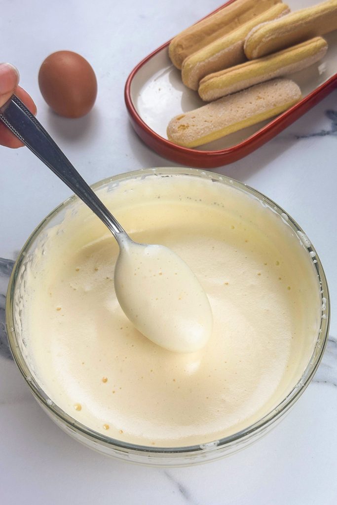De pate a bombe, of pâte à bombe, is een van de vele basisrecepten in de patisserie, het is een eiercrème met suiker, gebruikt voor het bereiden van veel koude desserts zonder koken, maar veilig, met gepasteuriseerde eieren, zoals de klassieke en beroemde tiramisù, daarom is het ook bekend als gepasteuriseerde tiramisùbasis. Het is meestal aan te raden om een siroop van water en suiker te maken en deze tot 121 graden te verwarmen, toe te voegen aan de eieren terwijl ze worden opgeklopt. Ik heb deze klassieke methode geprobeerd, maar was niet tevreden met het resultaat, want ik kreeg de eieren niet op een temperatuur tussen 60 en 65 graden zoals nodig is om ze veilig te pasteuriseren, dus gebruikte ik een alternatieve en zeer eenvoudige methode die me 100% zekerheid gaf van gepasteuriseerde eieren, door de eieren met suiker boven de 60 graden te kloppen voor minstens 6 minuten, om er zeker van te zijn dat de eieren echt gepasteuriseerd en veilig waren, zonder risico op salmonella of andere bacteriën, uiteraard als je wilt, kan je langer doorgaan, maar nooit boven de 70 graden, anders loop je het risico de eieren te koken. Laten we eens kijken hoe we het kunnen maken. De hoeveelheden variëren afhankelijk van hoeveel we moeten bereiden, ik geef je een indicatie voor 2 eieren, als we een portie met 4 eieren moeten maken, verdubbelen we ook de hoeveelheid suiker en zo verder, de procedure blijft hetzelfde. Je kunt ze eventueel ook zonder suiker pasteuriseren, maar met suiker krijgen we een mooie luchtige massa geschikt voor het bereiden van onze koude en romige desserts.