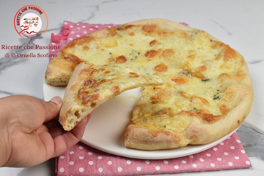 Haal uit de oven en geniet van onze heerlijke pizza, heet en smeltend, uitstekend met vier rode kazen of met de topping die je het lekkerst vindt. Ik gebruik natuurlijk altijd mijn favoriete smaak; elke keer als ik pizza bak, moet er minstens één met vier kazen zijn, of het nu wit of rood is, maakt weinig uit.