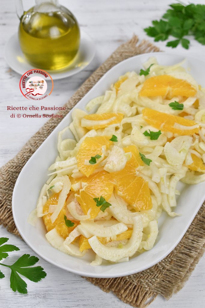 De venkel- en sinaasappelsalade is een klassieker van de zuidelijke keuken, vooral in Sicilië wordt het bereid, maar ook hier in Calabrië wordt het zeer gewaardeerd. Ik moet toegeven dat zodra de eerste sinaasappels aan mijn boompje beginnen te rijpen, ik het met veel plezier bereid. Het is smakelijk, snel en perfect als bijgerecht voor visgerechten, maar ook voor vleesgerechten, zelfs met een mooie varkenskarbonade past het uitstekend, of met geroosterde kip. De venkel- en sinaasappelsalade is echt heerlijk, vooral omdat venkel reinigend is en daarom is het goed om er veel van te eten. Sinaasappels, zoals we allemaal weten, zijn rijk aan vitamine C, en in de herfst en winter hebben we dat echt nodig om verkoudheid en seizoensgebonden ziekten te bestrijden. Laten we dus sinaasappels en venkel inslaan en deze heerlijke salade maken. Deze eenvoudige of verrijkte salade ontbreekt nooit bij ons thuis tijdens de kerstvakantie.