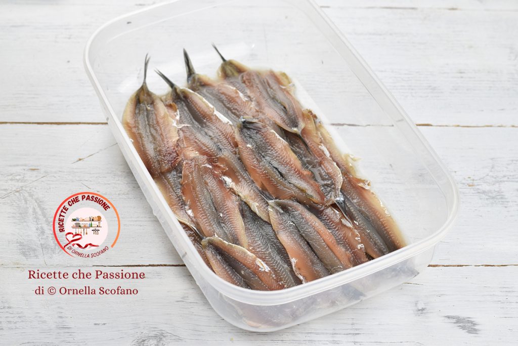 Gemarineerde ansjovis, een eenvoudig recept om ze thuis in alle veiligheid te maken voor verse en smaakvolle gemarineerde ansjovis met een speciale dressing. Om gemarineerde ansjovis te bereiden, hebben we mooie verse ansjovis nodig, bij voorkeur al 24 uur lang in een geschikte snelkoeler ingevroren, maar als we ze vers en niet ingevroren vinden, kunnen we ze zelf ook invriezen in de gewone vriezer die we allemaal hebben. Ik raad aan om ze eerst schoon te maken en daarna in te vriezen. Voor het schoonmaken kunnen we hulp krijgen in de viswinkel, meestal als we het vragen, halen ze de kop en ingewanden eraf, maar er zijn ook heiligen die ze soms perfect voor ons voorbereiden, zelfs zonder graat, en ja, om gemarineerde ansjovis te maken, moet ook de graat eruit, maar ik verzeker je dat het heel eenvoudig is om te doen, voor het geval onze vertrouwde visboer er niet aan heeft gedacht. Laten we dan eens kijken hoe we gemarineerde ansjovis bereiden, ik begeleid je stap voor stap, ook bij het schoonmaken van verse ansjovis, ik heb er vanaf mijn jeugd thuis bij mijn ouders zoveel schoongemaakt, we aten er elke week veel.