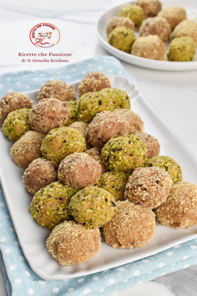 Snelle yoghurttruffels of kefir in drie smaken, koffie, hazelnoot of nutella en pistache. Als je ook wel eens yoghurt hebt dat je moet opmaken voordat het bederft, en je wilt niet de gebruikelijke cake maken, maak dan truffels met droge koekjes. Je zult zien dat ze in een mum van tijd verdwijnen en de yoghurt niet verspild of gegeten wordt voor een dessert dat soms saai kan worden. De yoghurttruffels in drie smaken zijn onweerstaanbaar, en bovendien zijn ze heel eenvoudig te maken, zonder te koken, je hoeft alleen de droge koekjes tot meel te malen en ze met de yoghurt te mengen, en in een oogwenk zie je de magie voor je ogen en in je handen plaatsvinden. Dus laat ik je beter uitleggen hoe het moet.
