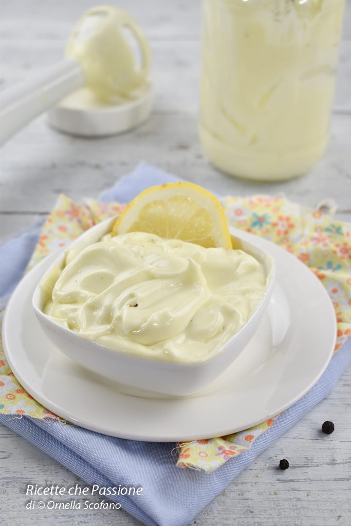 • Na 5-10 minuten maken we de mayonaise, we dompelen de staafmixer in de pot, we zetten hem op de dooier van het ei, met de andere hand houden we de pot vast, en met een hand starten we de staafmixer, deze stilhoudend, op de bodem van de pot, op de dooier. De mayonaise begint op te kloppen, het duurt even, langzaamaan, gaan we omhoog, zonder de mixer ooit uit de mayonaise te halen, en we mengen alle olie, tot we de mayonaise perfect opgeklopt hebben. We kunnen ook lichte klopjes met de mixer geven, en stoppen, zonder alles in één keer te doen. Een paar omwentelingen zijn genoeg om een heerlijke zelfgemaakte mayonaise te krijgen, en als we willen, kunnen we het naar onze smaak aromatiseren, met een beetje peper, chilipeper, of andere ingrediënten naar wens.