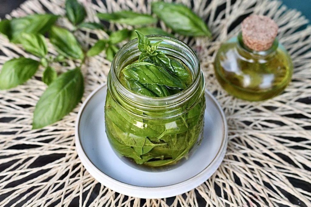 Basilicum in olie kan op een koele en droge plaats tot 6 maanden worden bewaard.