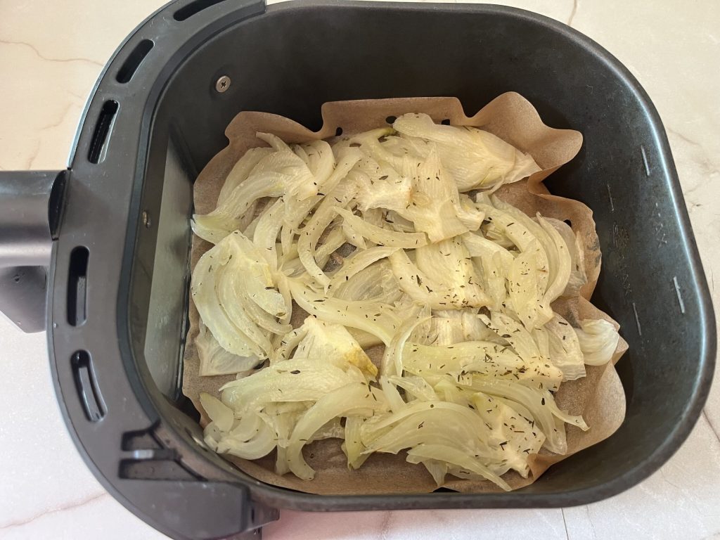 Geroosterde venkel is echt in een paar minuten klaar, slechts een snelle kook in de pan met een beetje extra vergine olijfolie en aromatische kruiden, en daarna slechts enkele minuten in de airfryer.