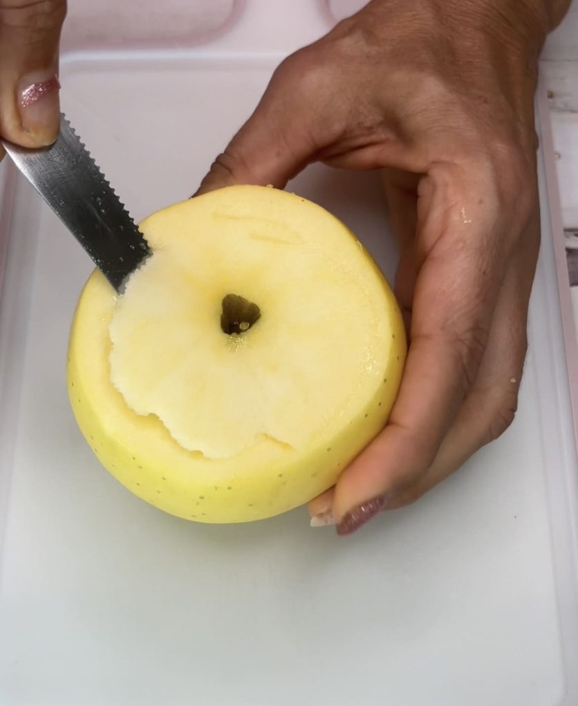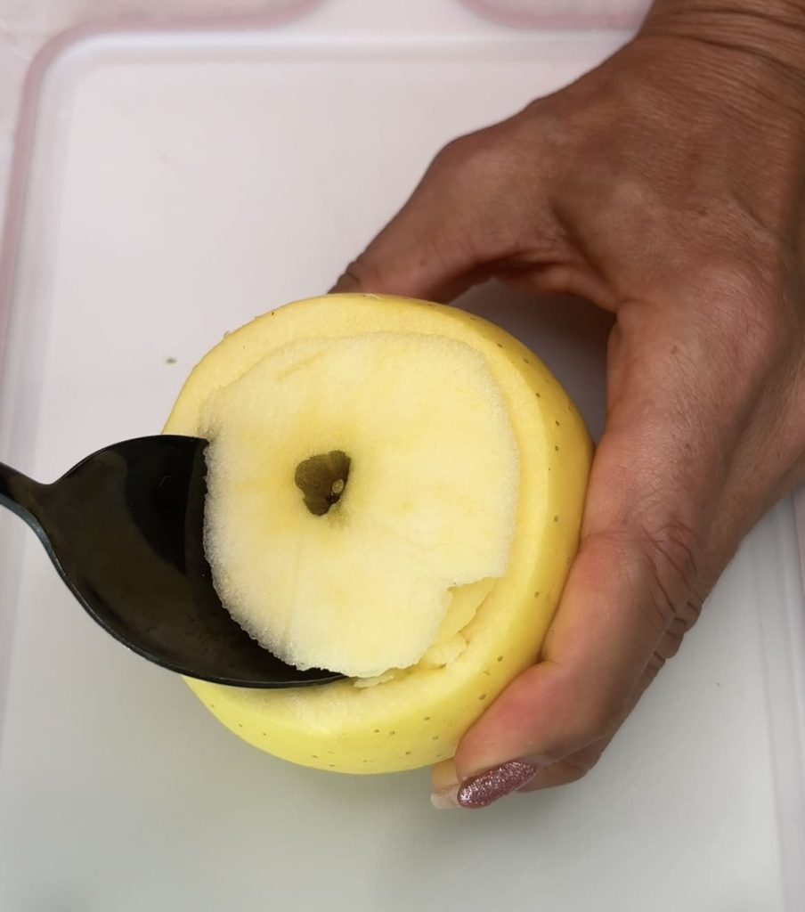 • Met een lepel hol je het binnenste van de appels uit