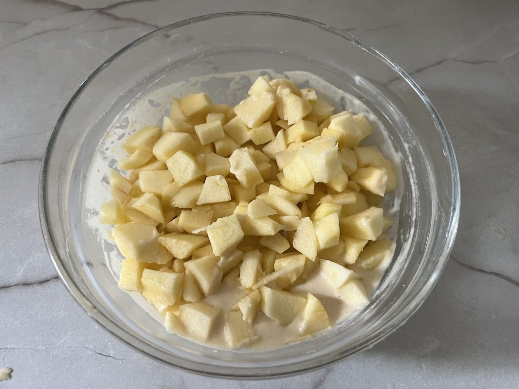Om de heerlijke appelbeignets in beslag te bereiden, begin met het schillen van de appels met een dunschiller. Snijd ze doormidden, verwijder de zaden en het klokhuis en snijd ze in kleine blokjes. Dompel ze onder in ruim water met het sap van een citroen om oxidatie te voorkomen.