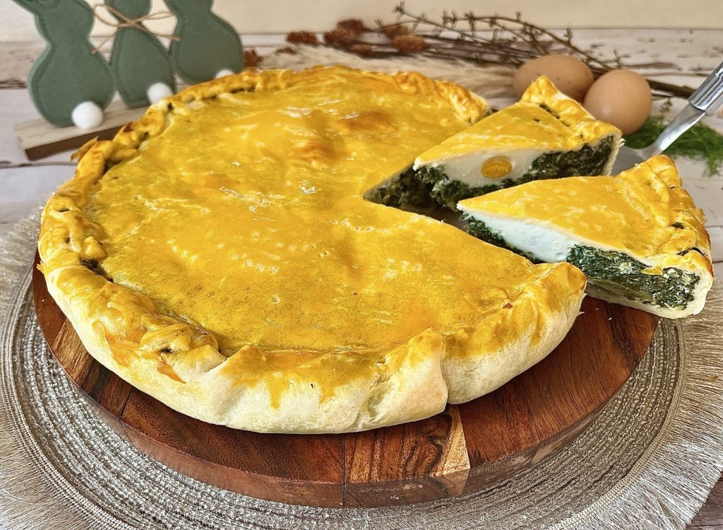 Het is een hartige taart op basis van snijbiet of spinazie, ricotta en eieren gewikkeld in een knapperig briseedeeg.