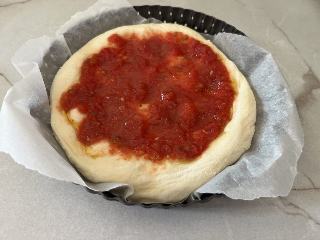 Ingrediënten voor de pizza in heteluchtfriteuse