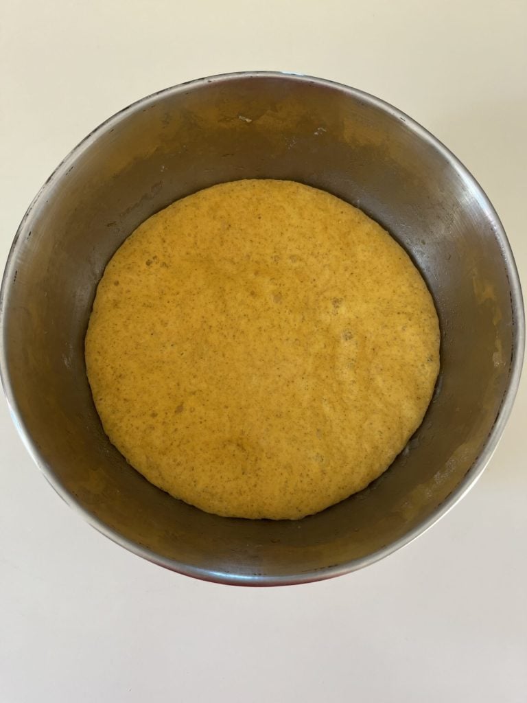 Zoals ik gewend ben bij zuurdesem, kneed ik ze ’s avonds voor de volgende dag zodat ze de hele nacht hebben.