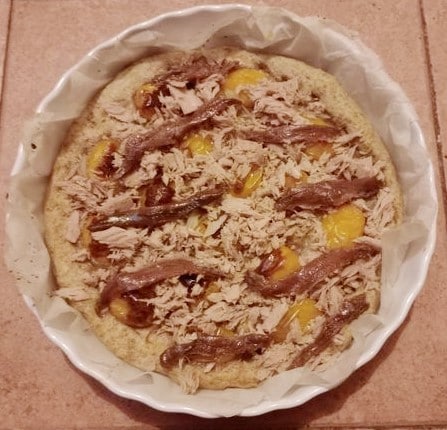 De volkoren pizza met tonijn, ansjovis en cherrytomaatjes is een smakelijke deegwaar die de eetlust bevordert als je niet veel honger hebt 😀