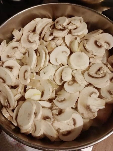 Vanmorgen kocht ik champignonpaddenstoelen en vis tijdens het boodschappen doen.