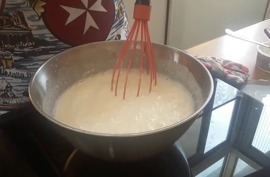 • Smelt de gelatine met twee eetlepels ananassap in een pannetje, wacht tot het afgekoeld is en voeg het toe aan het verkregen mengsel: meng voor 2 minuten vel 1 met de maatbeker.