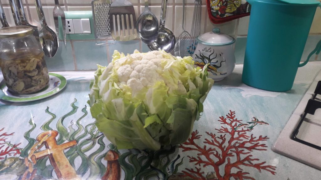 Kies een mooie verse bloemkool, dit kan van elke soort zijn, van wit, groen tot paars. Verwijder de buitenste bladeren en snijd hem in roosjes. Was hem grondig in veel water, waarbij je het water meerdere keren ververst.