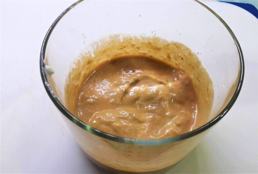Wanneer de aardappelen en cherry-tomaatjes gaar zijn, meng ze dan in een glazen kom en pureer.