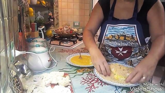 Je moet een beslag maken van water en bloem en ze dan door het paneermeel halen.