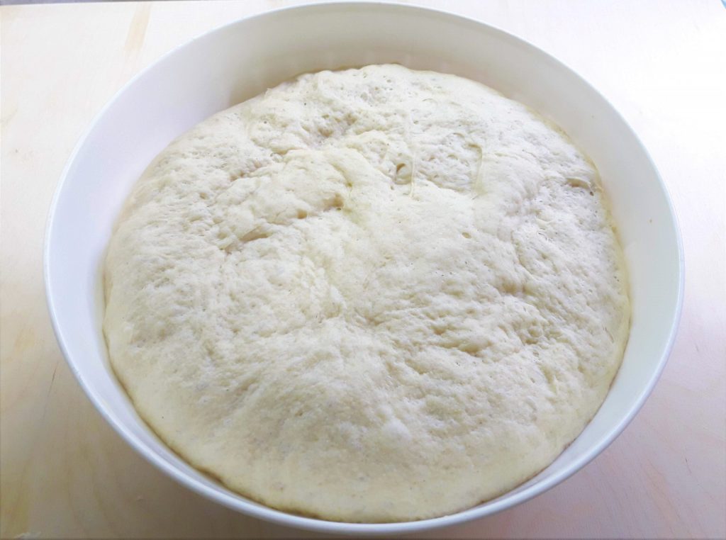 Zodra het klaar is, brengen we het over in een kom en laten we het rijzen, afgedekt of in de oven met het licht aan, voor 4 of 5 uur.