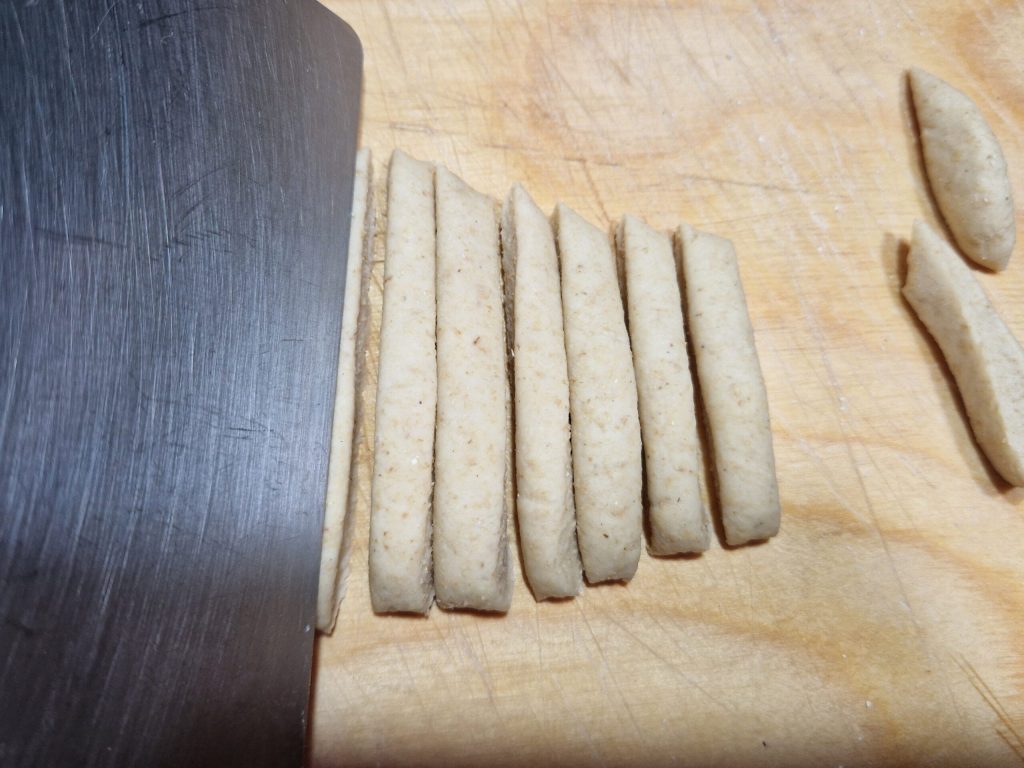 • Gebruik de deegroller om het deeg lichtjes plat te maken en snijd vervolgens met de pastasnijden stokken.