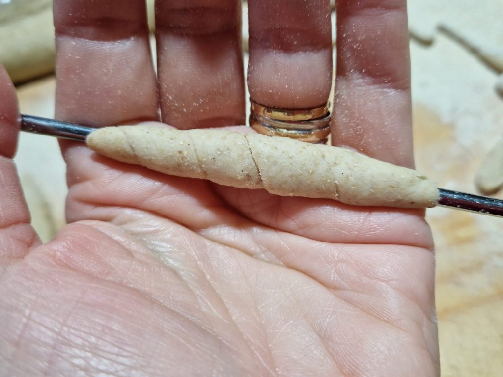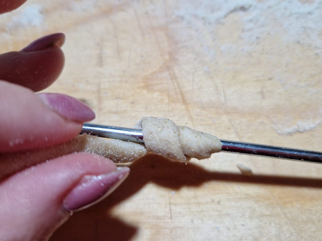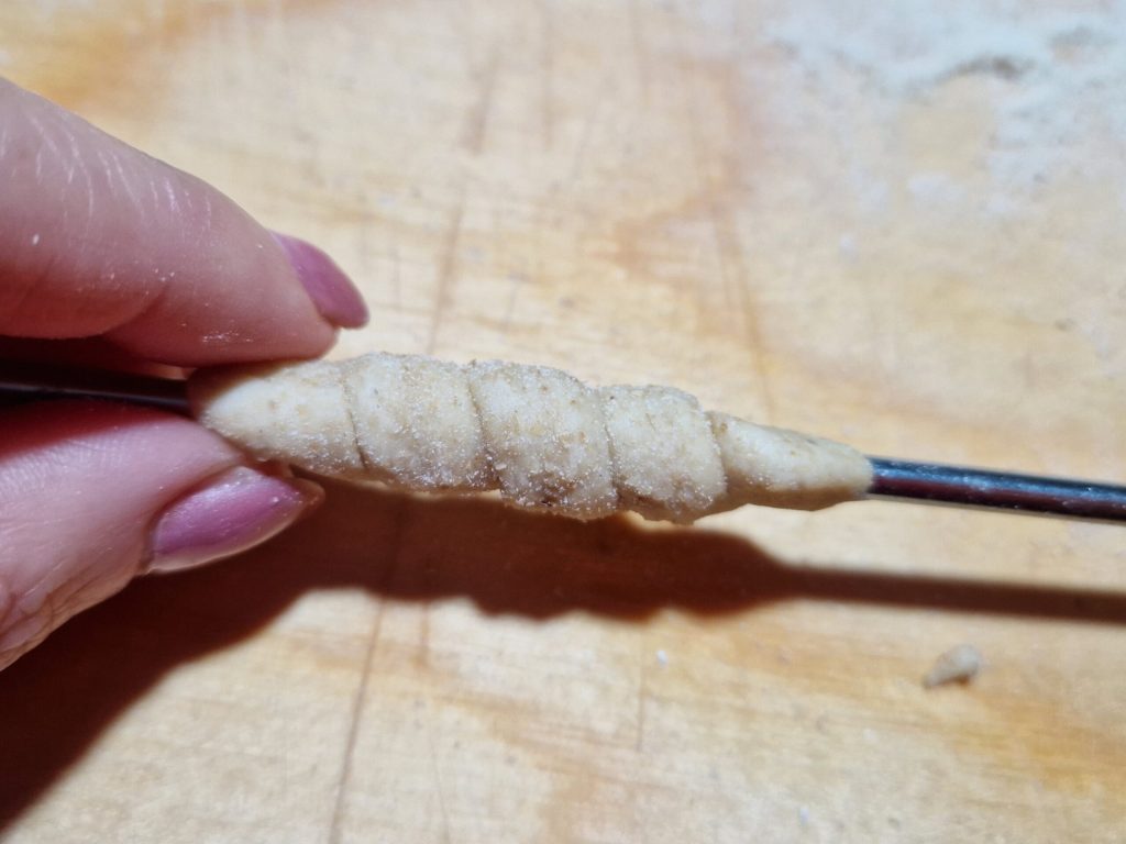 • Na de rusttijd, bereid de buso voor, dat wil zeggen de breinaald voor de busiate en de deegroller