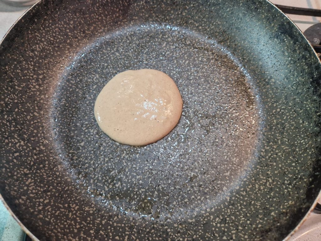 en zodra je kleine belletjes ziet, draai je ze om en voltooi je het bakken aan de andere kant.